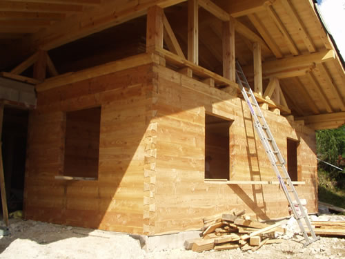 | Blockhaus aus Lärchenholz, schafft ein angenehmes Wohnklima. |